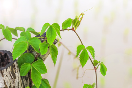 Gently green foliage of Chinese Lemongrass Liana with leaves in spring