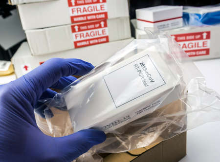 Covid-19 PCR kit in hospital warehouse, conceptual image