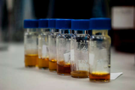 Test tubes with biomaterial in the laboratory. concept of medical, chemicals or scientific laboratory research and Innovation in the laboratory.