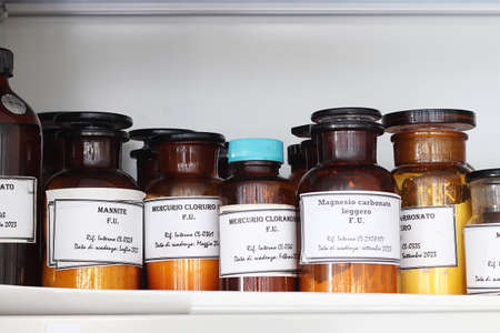 Medical flasks in a pharmacological laboratory