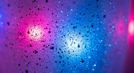 water drops on glass with pink and blue lights, abstract texture background