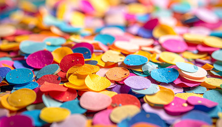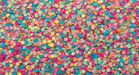 Vibrant and colorful confetti texture featuring a mix of circular shapes in different sizes and bright shades, perfect for adding a cheerful and festive touch to any project.