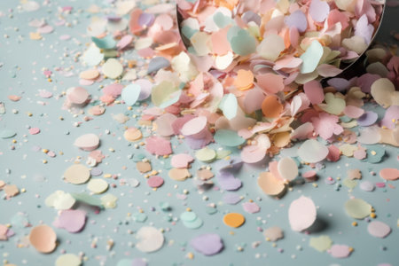 A bright and colorful confetti spread across a surface brings life to any celebration, inviting joy and happiness. Perfect for vibrant event decorations and festive themes.