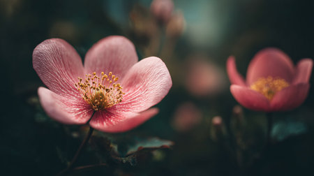 Delicate Pink Flowers with Golden Centers in Soft Focus