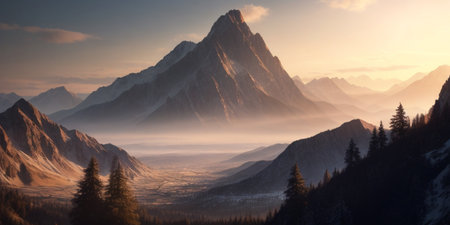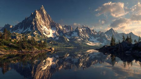 An AI generated illustration of a stunning landscape featuring a mountain and its reflection in the calm waters of a lake