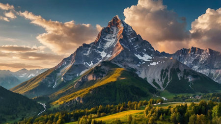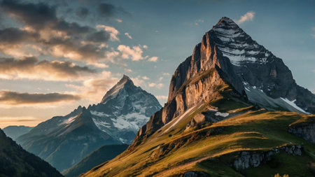 Mountain landscape at sunset with clouds in the sky, Switzerland.
