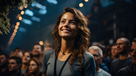 Enjoying the Show Woman Immersed in Live Music Concert Atmosphere With Blurred Crowd