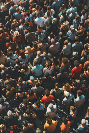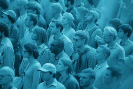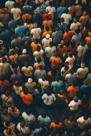 A large crowd of individuals is gathered indoors, likely at an event or meeting. Diverse clothing and hats are visible, with warm colors and a shallow depth of field. The composition showcases a sea of heads, with a blurred background suggesting an interior space. Suitable for editorial and commercial uses.
