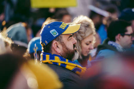 Parliament Square, London | UK - 2022.03.06: Ukrainian people protest, thousands gather to demand tougher sanctions on Russia from British Government, EU and USA to stop the war in Ukraine