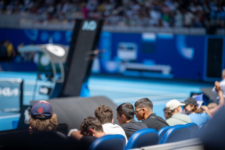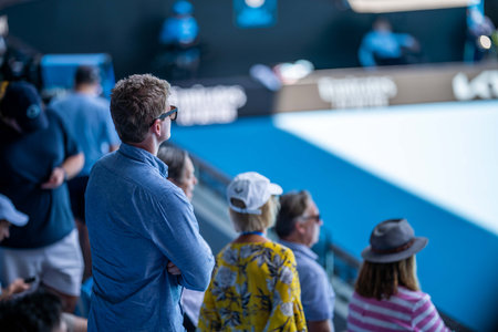 tennis fan watching a tennis match at the australian open eating food and drinking in australia