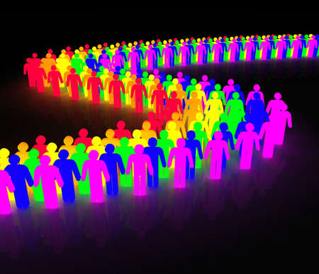 rainbow wave made of multicolored man character