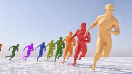 3d render people running repeat