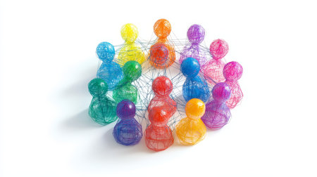 Colorful human figures interconnected by lines symbolizing social media marketing and community ties