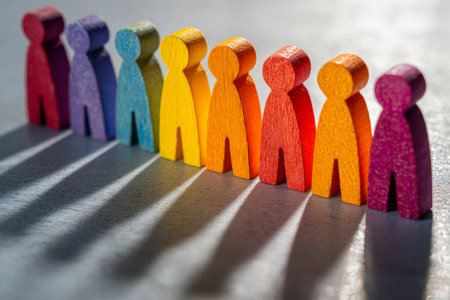 Leadership and inclusion. Colorful figurines on the surface.