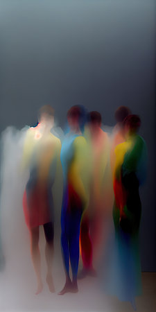 Silhouettes of people in a rainbow haze. AI generated