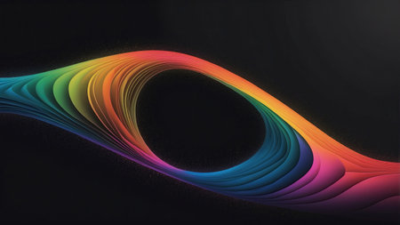 A dynamic wave pattern flows in vibrant colors, creating a sense of depth and motion against a dark backdrop, inviting visual exploration and imagination.