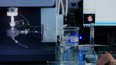 Close up of modern machinery analyzing liquid in laboratory for scientific experiment generated by artificial intelligence