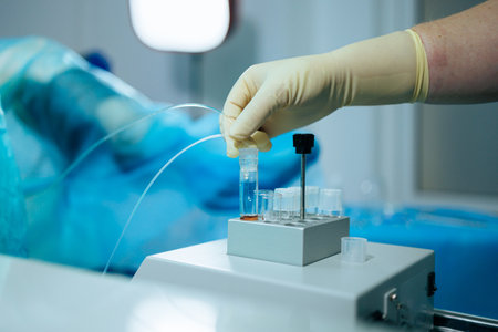 Doctor making a platelet-rich plasma serum using a laboratory equipment