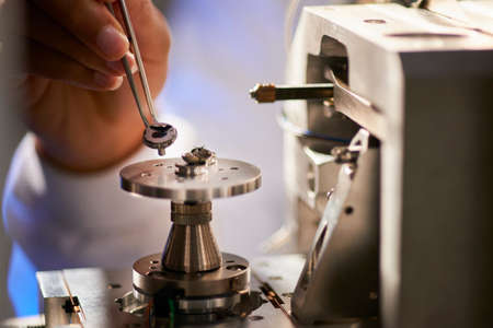 Mature watchmaker is working with WITSCHI ANALYZER Q1 at his own studio.