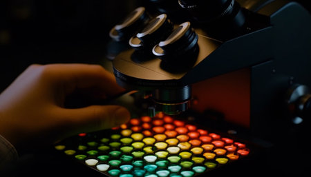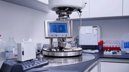 A close-up view of advanced laboratory equipment with colorful backlighting, emphasizing technological innovation in a modern research facility dedicated to scientific analysis and medical diagnostics.