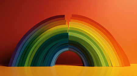 3d render of rainbow on orange background. Abstract background with rainbow.