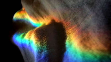Vibrant prismatic light leaks create a stunning and artistic display of gorgeous rainbow bokeh on a contrasting dark background, beautifully exemplifying contemporary modern digital effects