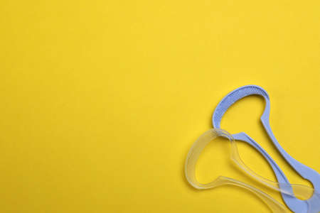 Medical equipment of the gynecological office on a blue background, layout with copy space