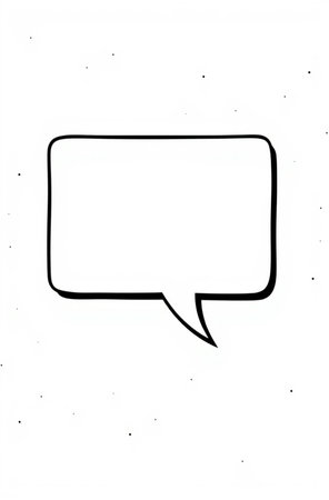 Hand drawn white speech bubble with pink stroke.