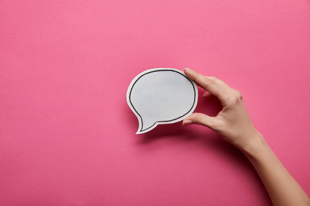 top view of empty white speech bubble on pink background