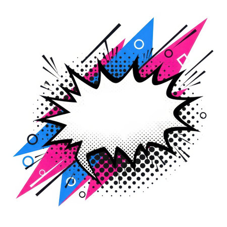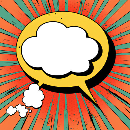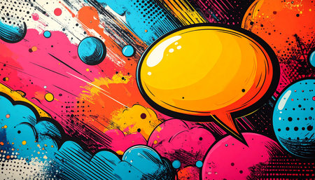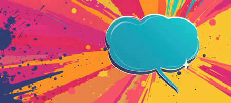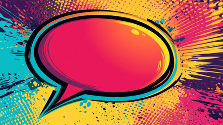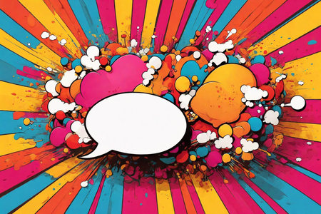 Colorful comic-style illustration featuring a blank speech bubble against a vibrant background with dynamic lines and dots, perfect for creative projects and expressions.