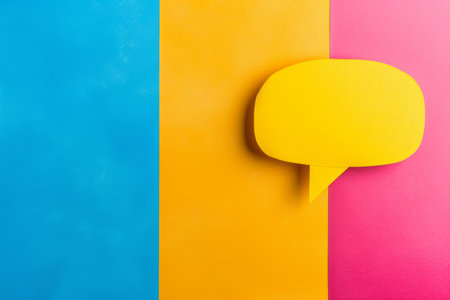 Paper speech bubble on a yellow background. Top view with copy space. Flat lay.