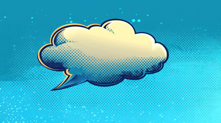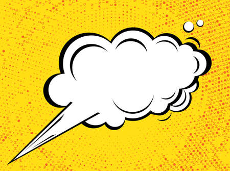 Bright pop art comic speech bubble on halftone dot pattern background, ideal for playful graphic design or retro comics style.