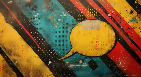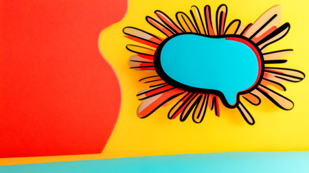 Vibrant Pop Art Style Banner Featuring Colorful Comic Elements and a Large Speech Bubble. Concept of Expressive Graphic Design, Retro Aesthetics, Creative Advertising, Artistic Expression. Copy space.