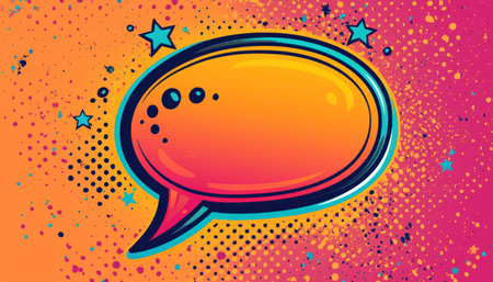 colorful comic book style speech bubble with halftone background