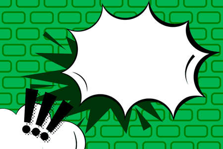 Comic text empty speech bubble banner, green strip radial halftone background. Comic text poster and sticker for quote pop art style. Explosion speech bubble burst design for text.