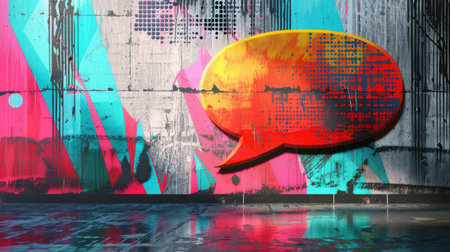 Vibrant Graffiti Speech Bubble on Urban Concrete Wall for Art and Design Projects