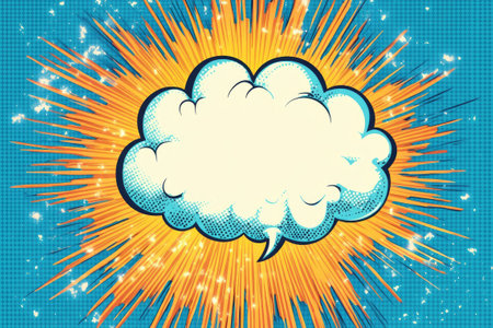 Comic book speech bubble with speed lines and glitter creates a dynamic and exciting backdrop for storytelling