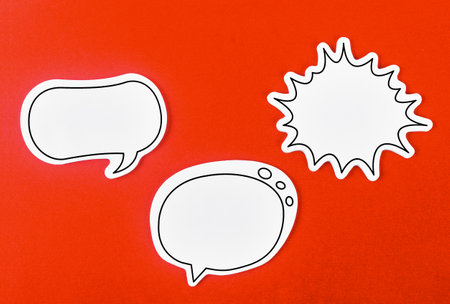 Set of Speech bubble with copy space communication talking speaking concepts on red background.