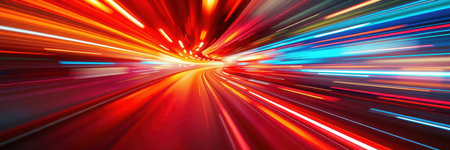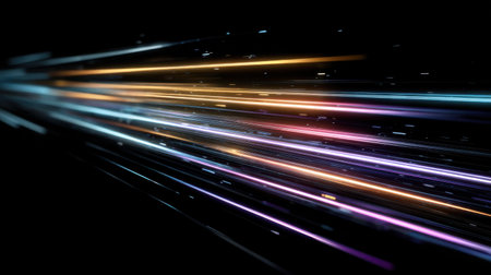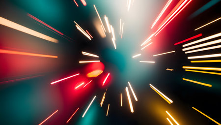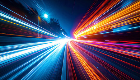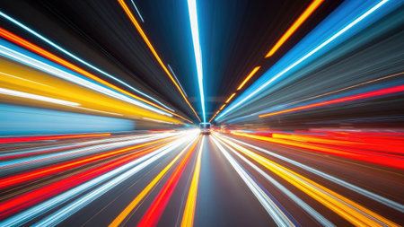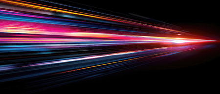 This vibrant image features colorful light trails in motion against a dark background, perfect for themes of technology, innovation, and energy.