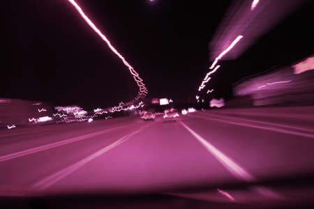 Night traffic with futuristic motion blur and zoom effects. On the road or streets, shoot from inside a moving car.