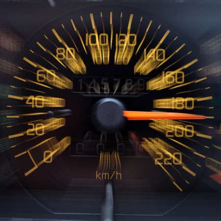 Close up shot with the digital speedometer of a car.