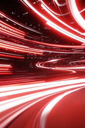 Blurred motion lines and a bright red color scheme on a digital backdrop.