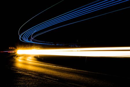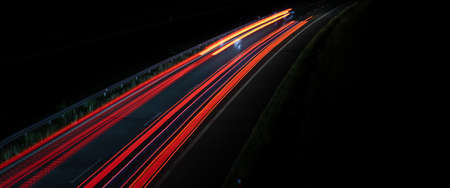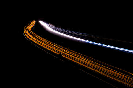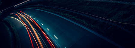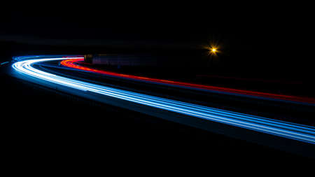Long exposure speed car lights trails on a night highway.