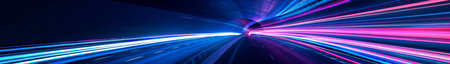 High-Speed Light Tunnel with Blue and Pink Rays.