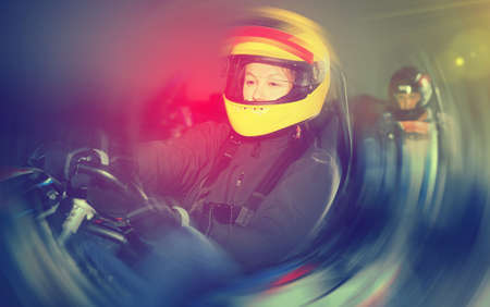 Woman driving sport car for karting in a circuit lap in sport c