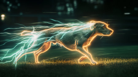 Golden Retriever with lightning around his neck. 3D rendering
