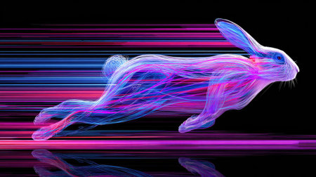 A glowing cheetah leaping forward with streaks of green and red light, radiating energy against a dark background