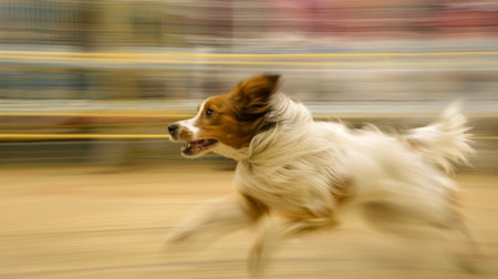 Energetic Dog Running Fast in a Park. Concept of Pet Agility, Outdoor Exercise, Animal Energy, Joyful Movement, Motion, High Speed. Copy space.