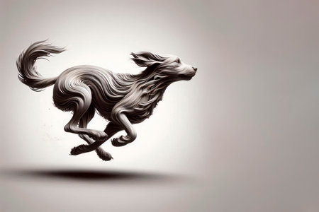 A running dog made of thin lines. Space for text