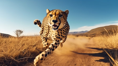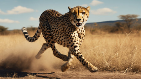 extreme running cheetah, on the savannah